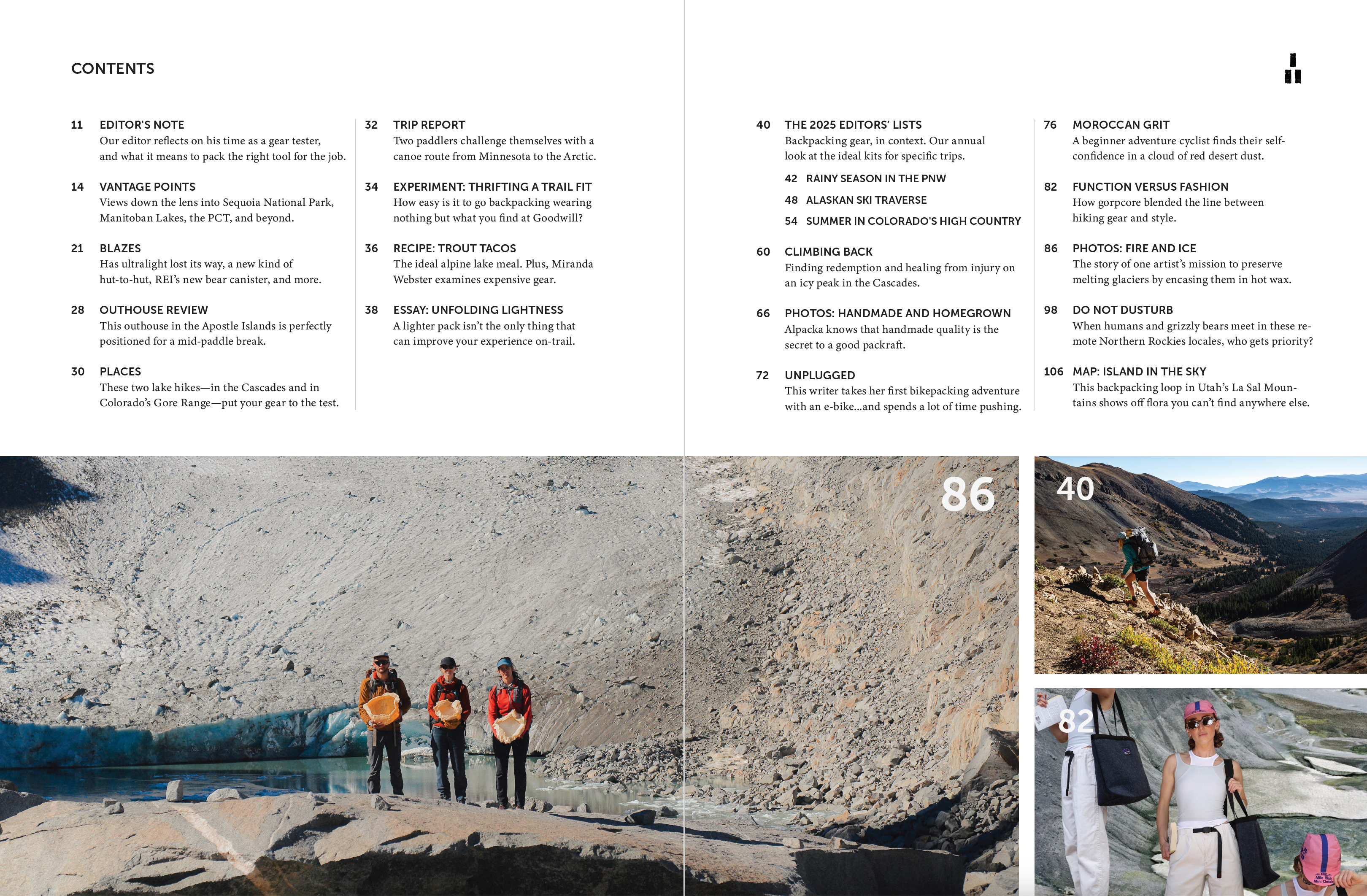Issue 9 of Trails Magazine features 108 pages of high-quality journalism, photography, and artwork, including the inaugural Editors' Lists. These three lists—each highlighting a specific place and time to go backpacking—replace the outdated and unhelpful “best of 2025” lists so prevalent elsewhere. We’re lending more weight to the lowly packing list, reintroducing critical context to editors' picks, and working hard to earn the trust of skeptical readers.
